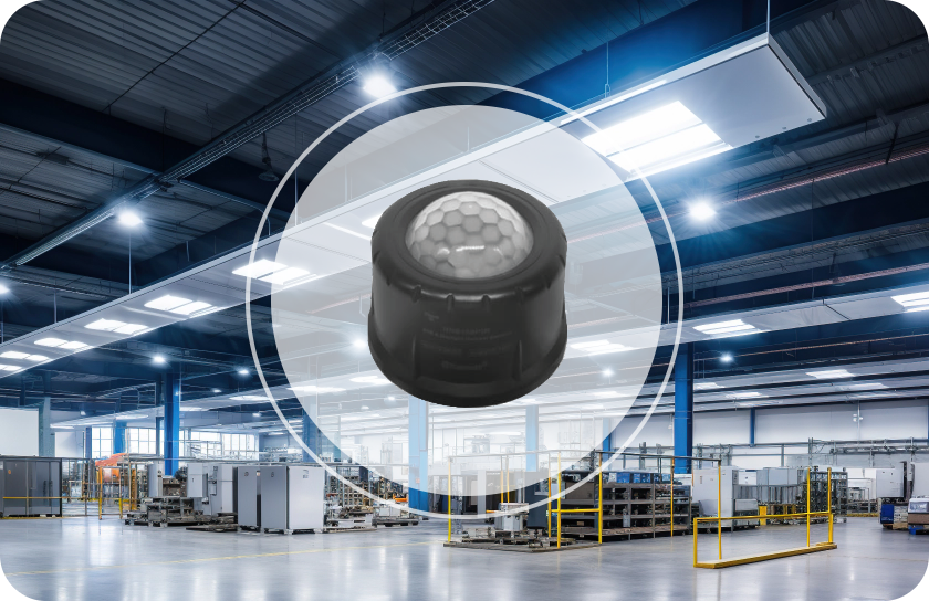 Equipped with PIR motion sensing, Radiar ZP10 detects movement up to 16-18m in diameter at installation heights of up to 12m, ensuring optimized energy use by dimming or turning off lights in unoccupied areas.