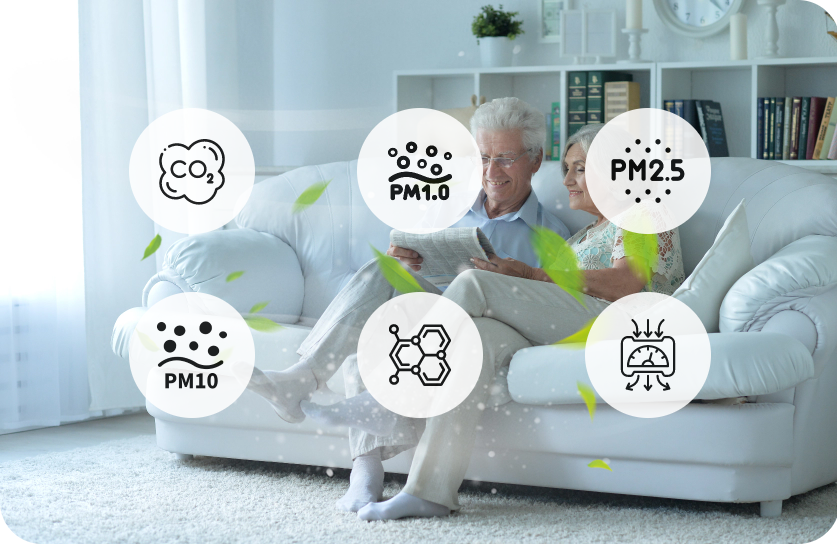Tracks Temperature, humidity, CO₂, PM1.0, PM2.5, PM10, TVOC, and AQI to help ensure the air you breathe is always within healthy and safe limits.