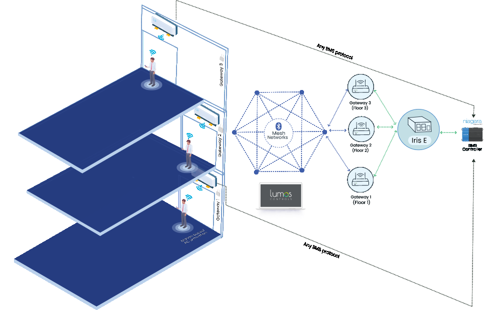 Supports two-way communication between Lumos Controls Mesh networks and BMS