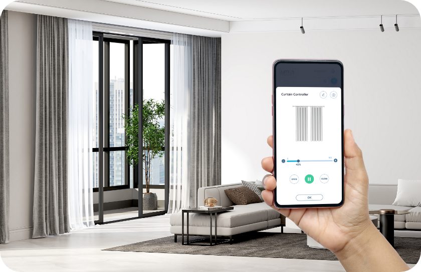 Experience smarter curtain control at your fingertips. With built-in Bluetooth 5.0, RS485 and UART protocol support, Radiar SBM can be easily commissioned, configured, and automated through the Lumos Controls app. Control open, close, stop, or set curtain positions with ease—automation has never been this simple.