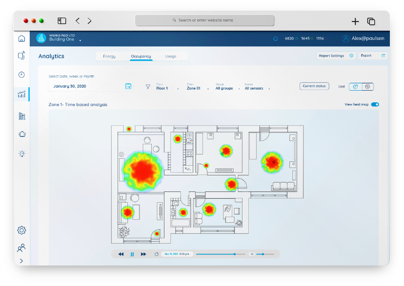 Provides critical data for space analytics and occupancy heatmaps, helping to optimize building utilization.